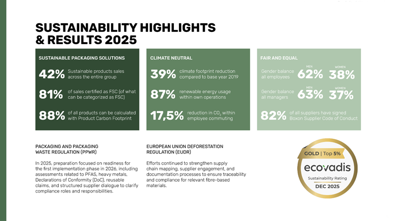 Mycket tid och resurser har lagts på förberedelser inför kommande regulatoriska krav inom PPWR och EUDR, krav som är avgörande för både Boxon och våra kunder.